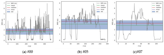 Relative position error (RPE) is used to calculate the difference in the amount of change in position for the same two timestamps. After alignment with timestamps, both the true and estimated position are calculated for the amount of change in position at equal intervals, and then the difference in the amount of change is made to obtain the relative position error, and the change criterion is used to estimate the amount of drift in the system.