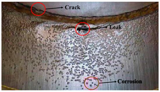 Pipelines are persistently subjected to complex operating conditions—including high temperature, high pressure, corrosive media, and mechanical stress—leading to defect such as cracks, corrosion, and deformation, as illustrated in Figure 1. Traditional manual inspection methods suffer from low efficiency, elevated operational risks, and blind zone coverage limitations. In contrast, in-line inspection (ILI) technologies utilize sensor-equipped robotic devices integrated with intelligent algorithms to perform internal pipeline assessments, enabling non-contact, high-precision defect monitoring. This paper systematically examines the operational principles, practical applications, and technical challenges of four core ILI methodologies: electromagnetic, acoustic, optical, and robotic detection technologies. By prospectively analyzing future development trajectories, the study aims to provide a theoretical foundation for advancing pipeline integrity management and safety assurance strategies.