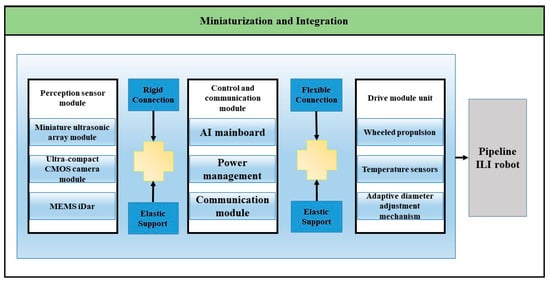 The second approach focuses on miniaturization and integration, employing micro-sensors with modular designs that are deployed on robotic platforms for inspection tasks, as specifically illustrated in Figure 11.