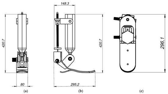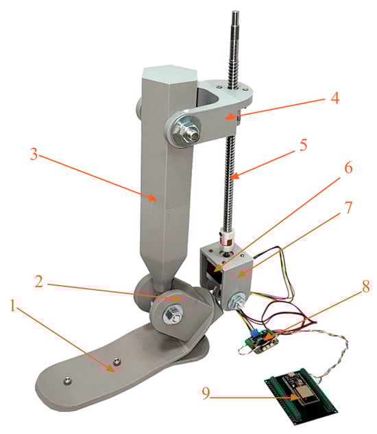 Another study [6] investigates functional testing of the passive MyFlex-δ foot prosthesis, which utilizes energy storing and return (ESR) technology. Its spherical ankle joint allows adaptation to uneven surfaces and improves gait stability. However, the lack of active control, the limited range of motion, and potential energy losses during load transfer remain major limitations. Study [7] presents an active ankle–foot prosthesis capable of replicating the biomechanics of a natural joint and reducing metabolic cost by 14% compared with passive devices. However, the system is heavy, requires individual calibration, and is battery-dependent. Work by [8] proposes an optimized prosthesis with a series elastic actuator (SEA) that reduces peak energy consumption. This approach lowered peak motor power by 78.8% at a speed of 1.1 m/s and by 66.98% at 1.6 m/s. Nevertheless, the design’s complexity and calibration demand remain limiting factors. Study [9] introduces a bionic lower limb prosthesis with a neuro-controlled system. The use of 3D printing reduces the cost and weight. However, testing revealed system response delays, and the strength of PLA materials remains questionable. Study [10] presents the concept of a 2-DoF active ankle prosthesis that supports inversion and eversion. While the prosthesis demonstrates a high control accuracy, the drawbacks include structural complexity, increased weight, and limited motion ranges. Research by [11] focuses on optimizing resistance torque control, enhancing the biomechanical imitation of a natural ankle joint. Using a five-link spring mechanism, the torque transmission error was reduced by 66.46%. However, the control system still requires further optimization. Work by [12] proposes an active transtibial prosthesis using a seven-link inverse dynamics model of gait. This allows real-time motion prediction but results in increased metabolic cost and complex calibration requirements. Study [13] describes an active ankle prosthesis controlled via a neuromuscular model. The control system adapts to terrain changes but is sensitive to latency and requires frequent recharging. Work by [14] introduces a 2-DoF active ankle prosthesis using Bowden cables for motion control in both planes. Brushless motors reduce the metabolic cost, but the energy dependency remains unsolved. Study [15] examines the development of a soft robotic ankle prosthesis with flexible pneumatic actuators. This reduces impact loads but requires a compressed air source and restricts motion range. Study [16] presents a flexible bionic ankle prosthesis made from soft polyurethane and carbon fiber. The device improves load distribution but remains passive, limiting the functionality compared with active models. Work by [17] focuses on integrating hip, knee, ankle, and foot prostheses into a unified system with a motorized hip joint. However, testing was conducted on a small sample size, requiring further research. In [18], a transfemoral prosthesis with a magnetorheological (MR) damper is developed, enhancing stability but incurring high production costs and requiring energy optimization. Study [19] is dedicated to developing a reactive series elastic actuator (RFSEA), which improves gait smoothness and reduces user load. However, it requires external power and complex personalized calibration.