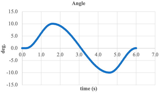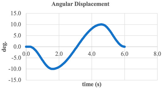 The obtained results confirm that the proposed design of the two-degree-of-freedom active ankle prosthesis provides the biomechanically accurate execution of dorsiflexion and plantarflexion movements. The angular displacement amplitude reaches ±20–22°, which corresponds to physiological values during level ground walking.