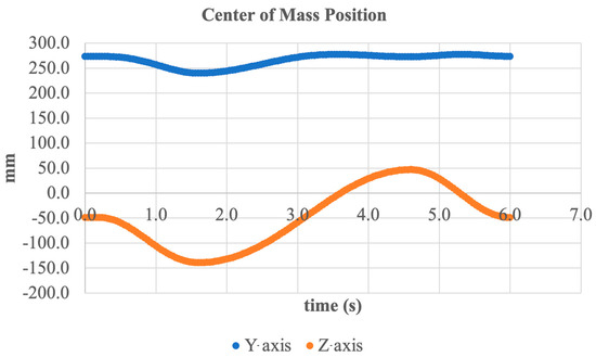 The center of mass maintains vertical stability, while longitudinal displacement exhibits the expected dynamics during the swing and push-off phases. Both angular and linear velocities remain within safe and controllable limits, ensuring smooth motion without abrupt transitions.