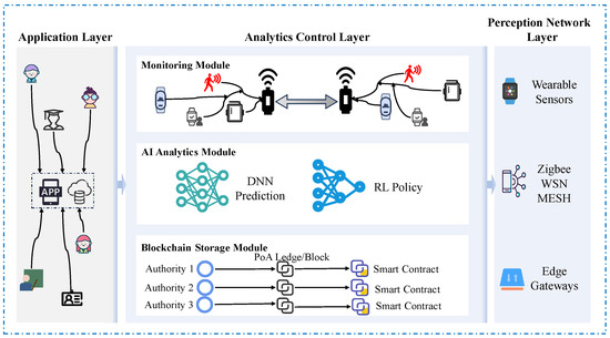 This research aims to bridge these gaps by developing an integrated, secure, and intelligent student health monitoring framework explicitly tailored for personalized educational contexts. The proposed framework harnesses advanced WSNs for continuous [15], real-time health data acquisition, coupled with robust AI-driven analytics and blockchain technology for secure, transparent, and immutable data handling [16,17].