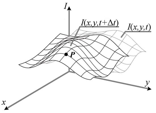where is a high-order term. According to the conservation of optical flow brightness and the negligible deformation of structural vibration, the partial derivatives in the x, y, and t directions can be denoted as and in the spatial domain, respectively. The full-field optical flow vector is and , and Equation (2) can be written as follows: