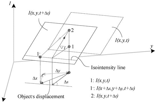 where the is a known scalar value of the gray component gradient, which can be calculated from the partial derivatives of the first sequence image, ∆s is an unknown scalar value of the displacement in the direction of the illumination intensity gradient, as shown in Figure 2.
