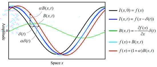 where the δ(t) represents the displacement function of a small amplitude generated by the weak structural response. The weak structural response in is separated and expanded in the form of the first-order Taylor series, and this is superimposed with the original input signal after amplifying a specific motion signal component. At time t, the first-order Taylor series form of with respect to x can be expanded as follows: