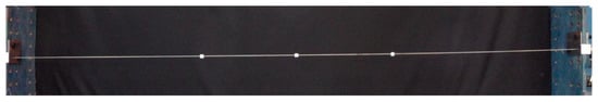 Vision-based displacement measurements allow for the extraction of cable vibration frequencies or deformations, enabling the estimation of cable forces through the analysis of the frequency–tension relationship. In previous studies [,,], vibration frequencies derived from vision-based displacement data were utilized to estimate cable tensions. Specifically, Kim et al. [] employed a zero-mean normalized cross-correlation (ZNCC)-based template-matching method to monitor vibrations of multiple cables on a cable-stayed bridge, successfully estimating cable tensions from the measured frequencies. Feng et al. [] applied frequency-domain template matching to track vibrations of stadium cable-stayed elements, from which cable forces are calculated. Zhao et al. [] utilized a smartphone camera to track manually placed markers on the cables of a pedestrian bridge. By applying a sliding average filter to the displacement time series, vibration components induced by camera motion are suppressed, allowing accurate extraction of cable frequencies and subsequent estimation of cable tensions. However, current vision-based methods typically depend only on extracting the fundamental frequency of the cable, limiting the reliability of tension estimation due to the absence of multi-order modal verification.