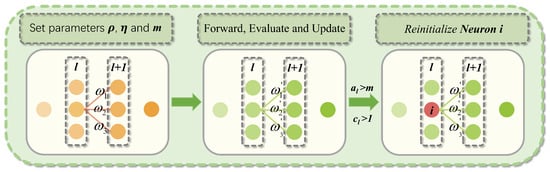 30]. To enhance the agent’s adaptability to dynamic environments and facilitate efficient exploration, this study integrates continual backpropagation (CBP) into the PPO framework. Unlike conventional approaches that freeze network weights after training, CBP reinitializes neurons at the structural level to preserve architectural diversity.