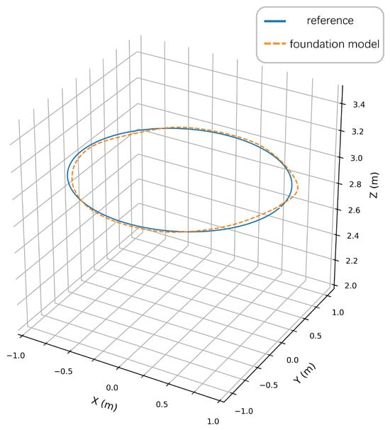 Figure 8, the 3D trajectory plot explicitly compares the reference and prediction with the foundation model. As demonstrated in