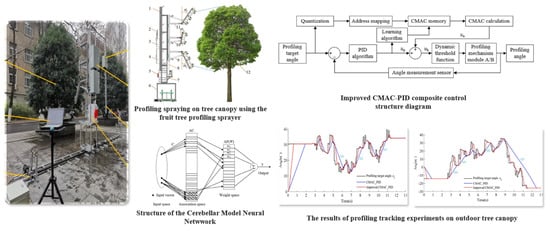 - Nan, Y.; Zhang, H.; Zheng, J.; Yang, K.; Yang, W.; Zhang, M. Research on profiling tracking control optimization of orchard sprayer based on the phenotypic characteristics of tree crown. Comput. Electron. Agric. 2022, 192, 106455. [Google Scholar] [CrossRef]