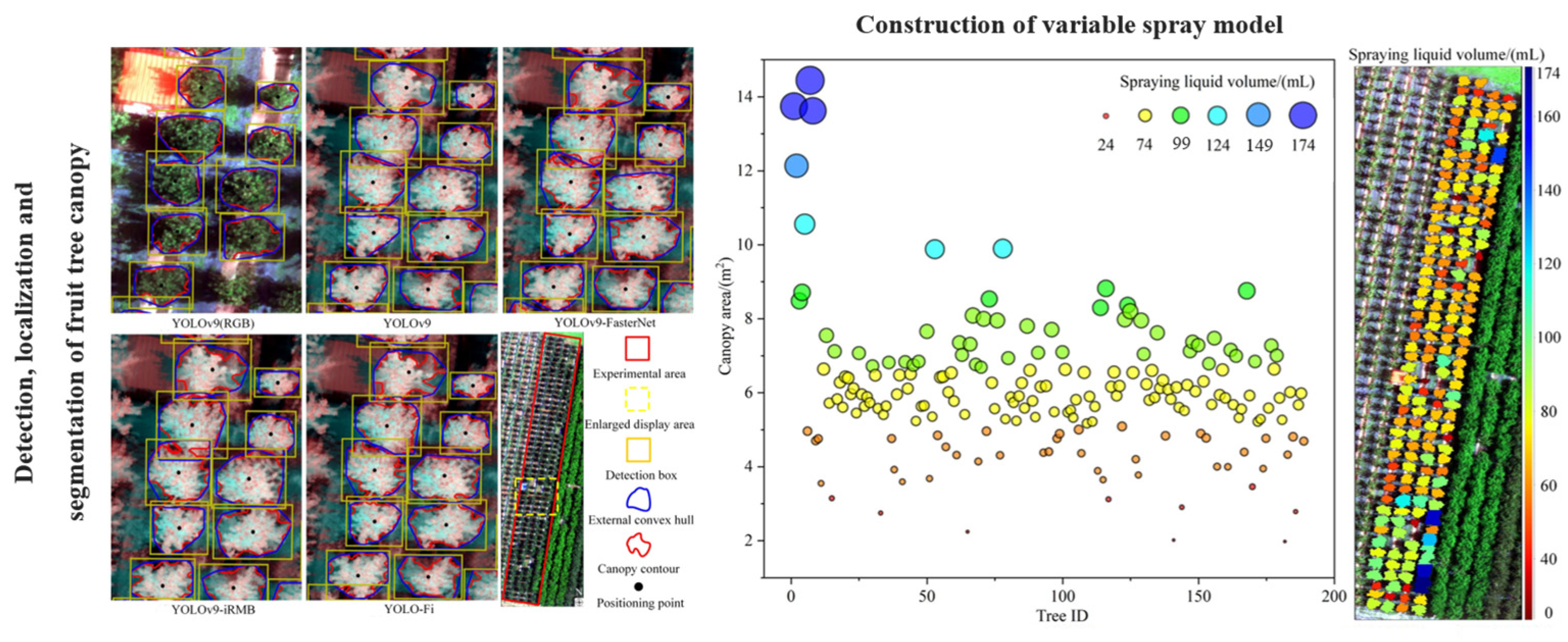 - Jiang, S.; Li, W.; Ma, H.; Wang, K.; Du, Z.; Zheng, Y. Design of target-variable spraying system based on FAVD of fruit tree canopy. Front. Plant Sci. 2025, 16, 1582664. [Google Scholar] [CrossRef] [PubMed]