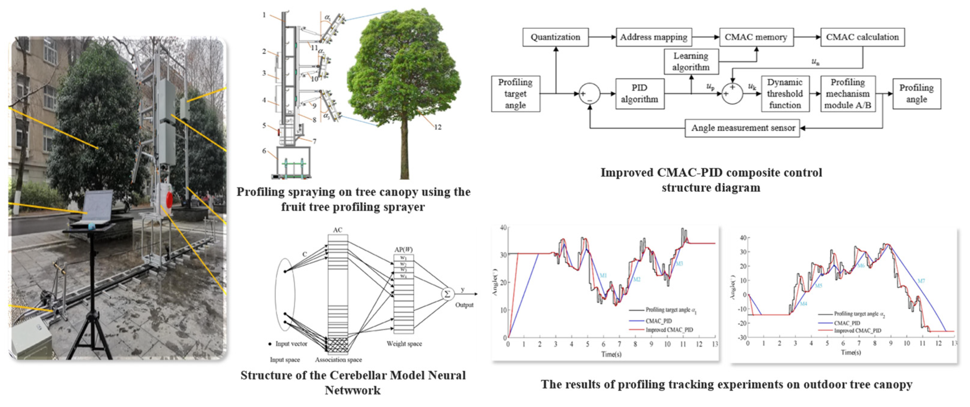 - Nan, Y.; Zhang, H.; Zheng, J.; Yang, K.; Yang, W.; Zhang, M. Research on profiling tracking control optimization of orchard sprayer based on the phenotypic characteristics of tree crown. Comput. Electron. Agric. 2022, 192, 106455. [Google Scholar] [CrossRef]