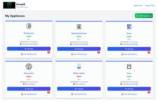 EnergiQ is an intelligent, user-friendly platform that enables households to understand, and optimize appliance-level energy consumption through seamless automation and personalized feedback. The user journey begins with the installation of a plug-and-play IoT setup comprising smart plugs and a pre-configured local gateway (e.g., a Raspberry Pi). Once the appliance is powered on, the system will automatically record real-time measurements of power, current, and voltage. The measurements are transmitted securely to the cloud through the MQTT protocol with TLS encryption, and authenticated through using token-based access control mechanisms. This provides confidentiality and data integrity during the data transport. Through the EnergiQ web or mobile interface, users are guided to easily pair each smart plug with the corresponding appliance using intuitive menus. This process takes just a few seconds and requires no technical expertise, enabling accurate device-level tracking with minimal effort.