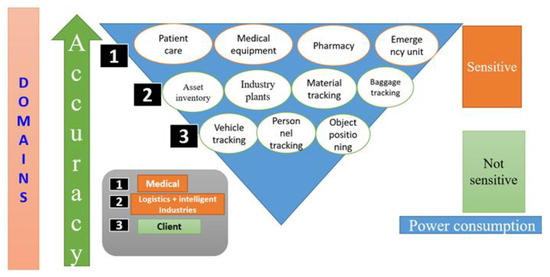 IPSs have emerged as pivotal tools for addressing critical challenges in healthcare, including workflow inefficiencies, medical errors, and operational costs. Broad surveys by Nia et al. [71] and Jeny et al. [72] contextualize healthcare applications within the broader evolution of IPS technologies. Nia et al. [71] emphasized energy-efficient wireless personal area networks, a critical priority for wearable healthcare devices requiring prolonged operation. Complementing this, Jeny et al. [72] highlighted advancements in artificial intelligence (AI) and adaptive signal processing, demonstrating their potential to enhance localization accuracy in dynamic hospital environments through real-time noise filtering and multipath mitigation. These foundational studies frame the dual challenges of energy efficiency and precision inherent to healthcare IPS design. Building on this, Bazo et al. [73] conducted a systematic survey of Real-Time Location Systems (RTLS) in healthcare, identifying barriers such as sensor limitations, infrastructure costs, and human resistance to adoption. Their taxonomy categorizes hardware, application, and maintenance requirements for successful deployments, advocating for hybrid solutions that balance scalability, accuracy, and power consumption [73].