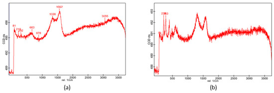 Raman spectra of the specimens were recorded in the range from 80 to 3500 cm−1 using an alpha300 RS-Raman-SNOM Microscope (WITEC GmbH, Ulm, Germany), equipped with a 532 nm excitation laser at 35 mW laser power.