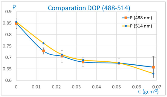 Once the system was adjusted, the degree of polarization (DOP) was determined by measuring the Stokes parameters. As these parameters are directly related to the intensity of light, they can be measured by manipulating the information of the light scattered by the sample. Stokes parameters may be determined using the aforementioned elements: p, WP, and a camera (Figure 3). Thus, the parameters are found by measuring intensities in four steps, by rotating the polarizer and employing the waveplate (retarder).