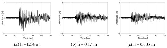 Signals received from the same transducer (top-left) under the same impact location (Q14) with different impact energies.