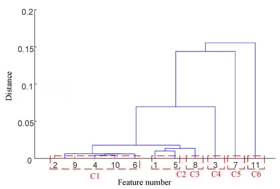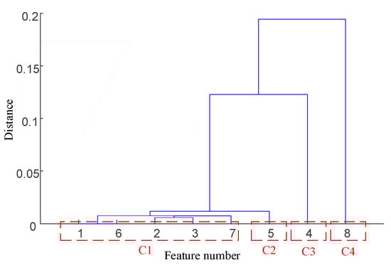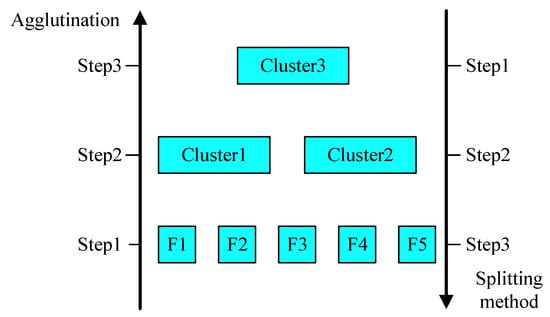 In this study, we select the bottom-up coalescent analysis method, use hierarchical clustering to divide the primary features into multiple clusters, and select clusters according to the clustering results, and then select a feature from each cluster as the representative feature of the cluster, so as to realize the re-election of features. The specific implementation steps are as follows, and let the set of primed features be :