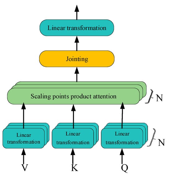 Let the input sequence be , the maximum length of the output sequence be T, the number of attention heads be N, and the output sequence dimension of each attention head be H, and then the weight matrices in the attention heads all satisfy , , . Transformer model multi-headed self-attention mechanism for linear transformation of input data: