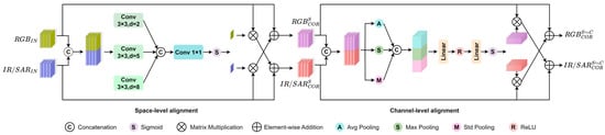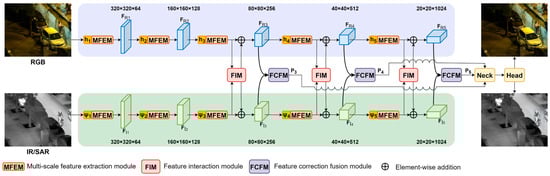 where and denote the input feature maps from RGB and IR/SAR modalities, respectively, and represents the final fused features for detection.
