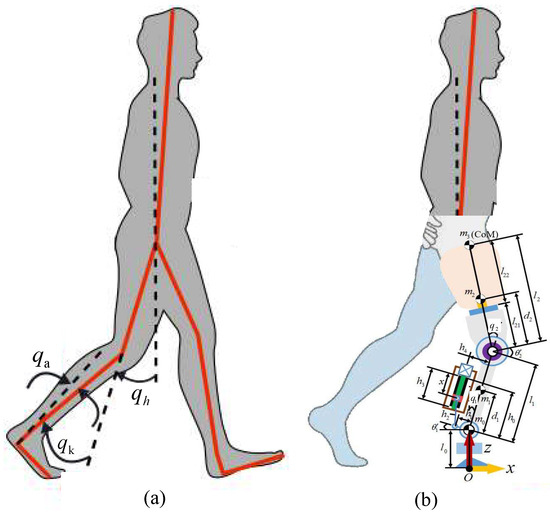 To reduce the control parameters, a continuous-phase variable was presented for the motor control of the leg joints [12]. The motion of the knee and ankle joints could be parameterized using the same phase variable. There was a kinematic relationship between the angle of the knee joint and that of the ankle joint, which varied with the phase variable. In [13], the authors developed a method for calculating joint angles from digital snapshots or videos using computer vision and machine learning techniques to achieve a more accurate evaluation of ergonomic risk. Starting with an ergonomic analysis, this study explored the use of a semi-supervised training method to detect the skeletons of workers and estimate the positions and angles of their joints. However, the kinematic relationship between the joints has not yet been demonstrated. The motion parameters of each joint were independent. In [14], the authors presented a continuous-phase variable for stance phase control and an impedance control method for swing phase control. However, a method for designing the continuous-phase variable was required to collect a large amount of data on human movement. In [15], the authors introduced virtual constraints for powered prosthesis control, including steady-state and transitional gait. Kinematic interpolation was introduced to achieve a smooth transition between two steady states. However, the control parameters were trained using human motion data and could not be adaptively regulated. In [16], the kinematics of leg joints were parameterized under different walking speeds and inclines. They compared continuous-phase control with finite-state machine control. However, to provide motion accuracy, collecting motion data for different human bodies remains quite complex. In [17], the authors proposed a continuous-phase variable for the entire gait cycle. The unified control method reduced the parameters required for the motor control of the joints. However, the parameters for continuous-phase control were pre-trained and could not be automatically adjusted according to the various walking tasks.