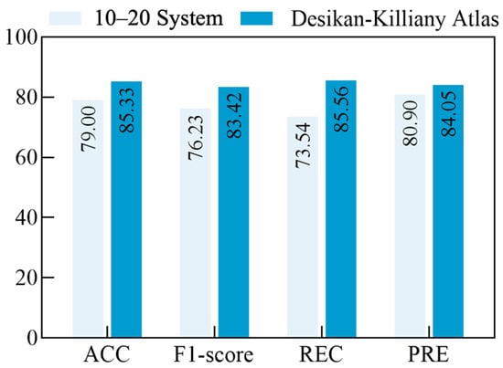 As shown in Table 5, our model demonstrates superior performance, achieving significant improvements in ACC (+2.16%) and PRE (+1.12%) compared to current state-of-the-art (SOTA) methods. The improvement in ACC is attributed to the enhanced feature accuracy provided by the CFE strategy and the effectiveness of Focal Loss in addressing difficult samples. The increase in PRE reflects the FADA module’s effectiveness in improving generalization and distinguishing between depressed and healthy subjects, which aligns with the findings reported in Zhang et al. [].