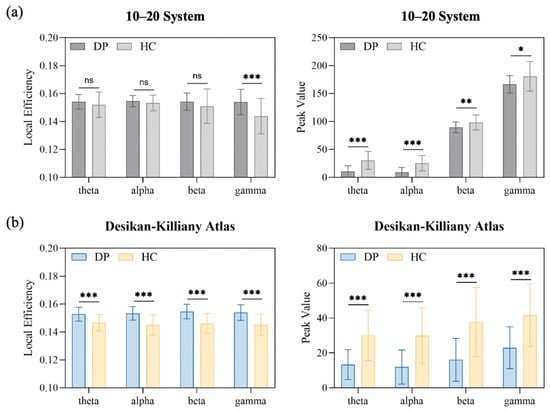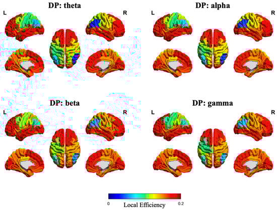 Based on the PLV adjacency matrix, the Clustering Coefficient (Cp) and Local Efficiency (Eloc) are further calculated. The Cp measures the degree to which the neighbors of a node are interconnected, and is defined as
