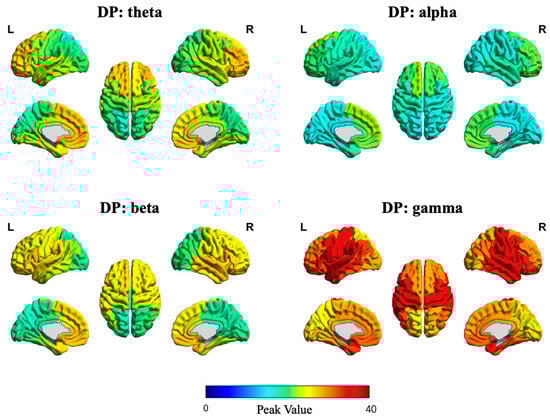 Based on evidence from EEG studies on depression, multi-dimensional features across frequency bands of ROI signals (theta 4–8 Hz, alpha 8–13 Hz, beta 13–30 Hz, gamma 31–80 Hz) are extracted, which contain linear features (spatial, temporal, and spectral domains) and nonlinear features (dynamic complexity metric), aiming to comprehensively characterize the EEG signal and provide effective input information for depression classification. The complete feature list is shown in Table 2.