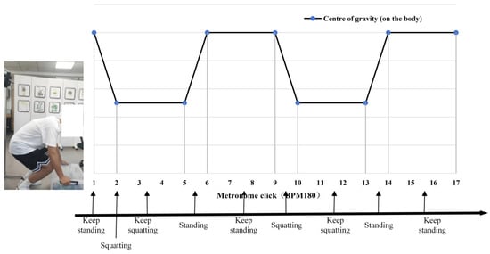 Schematic diagram of the position of the centre of the human body for the experimental movement.