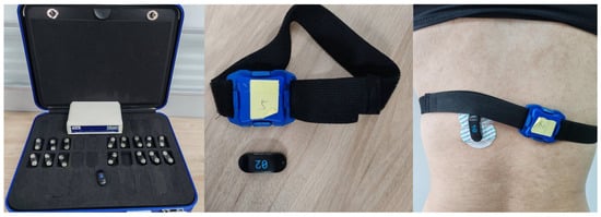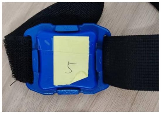 The devices used to acquire the MMG signals were 9-axis IMU sensors (LPMS-B2, ALUBI, Guangzhou, China). The sensors are wireless posture sensors that can be used individually or in sets, and in this experiment, six sensors were used with a maximum sampling rate of 400 Hz. The experimental equipment is shown in Figure 5. The MMG signals detect the total muscle changes caused by the activity of the active or stimulated motor unit, which occurs during the transient phases of dynamic contraction or constant-length contraction of the muscle–tendon unit. Thus, when using a posture sensor that detects vibrations on the muscle surface, the vibration detected is the MMG signal [20,21].