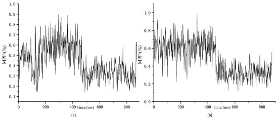 There are also many features of both signals that correspond to muscle fatigue-related features, including integrated electromyographic values (IEMG), root mean square (RMS), mean power frequency (MPF), median frequency (MF), and so on. However, for the construction of the fatigue classification model, selecting more feature values will increase the mathematical dimension. In this study, two kinds of biosignals were used, with six muscles measured for each, which is already a good data size. Therefore, a synthesis of the existing literature on the characteristics of the two signals revealed that the mean power frequency appears to decrease with deeper muscle fatigue, which is attributed to the decrease in pH, leading to a decrease in the conduction velocity of the muscle fibres [25,26,27]. In this paper, we extracted the MPF eigenvalues of the two signals to analyse them:
