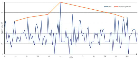 It was found that the peak MPF initially increased with the duration of exercise and then, after reaching the maximum value, the peak MPF gradually decreased. Based on the existing literature [8,9,10], we interpreted the peak MPF after reaching its maximum value as indicating the beginning of the fatigue state. In this study, the change in the MPF peak was divided into the following stages, as shown in Table 2.