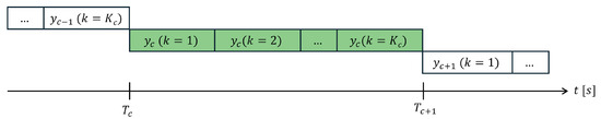 Within the s-th digital sensing node, the two main players are the digital accelerometer module, which is devoted to continuously sensing vibrations, and the MCU, which typically manages data aggregation (from data buffer streamed in real-time), communication, and logging. Each digital accelerometer embeds its own clock and temporarily stores digital samples in a first-input-first-output (FIFO) queue. To prevent data loss, the MCU must download the FIFO buffer before it reaches saturation. As shown in Figure 4, once a predefined number of samples per chunk, is collected, the c-th data chunk for the s-th sensing node, , is retrieved.
