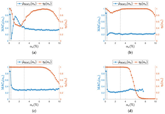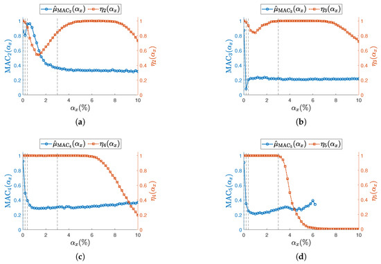 Stability thresholds , , and , as well as the minimum and maximum model orders and , have been tuned to ensure consistency with the reference values obtained from the eigenvalue analysis (see Table 1 and Figure 3).