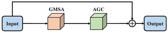 Spatial attention mainly focuses on the positional information of key feature points in the image, while channel attention primarily focuses on the importance of different channels in the image [22]. To study the effectiveness of different attention structures and their impact on model performance, we designed three experiments in the following sequence: applying the AGC module first, followed by the GMSA module, running AGC and GMSA in parallel, and combining the effects of AGC and GMSA. These experiments aimed to explore the synergy between different attention mechanisms in the network and determine the optimal combination to further enhance the model’s performance. The specific results are shown in Table 7.