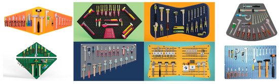 - Final selection and project conclusion: The student teams concluded the project with end-of-course activities, all of which took place during the final week of the course. The project culminated in a comprehensive report that detailed the entire DPMT process and highlighted the most effective tool board design proposed by each team. Figure 7 presents several of the tool boards developed by students’ teams.