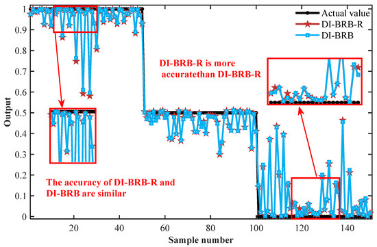 Comparison between fault diagnosis output and actual value of DI-BRB-R.