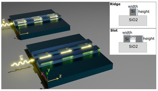 Common optical waveguide configurations used for sensing: ridge waveguide (top), slot waveguide (bottom).