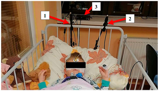 Figure 5 illustrates the placement of the measurement equipment in the sleep laboratory environment during the ongoing PSG examination. In certain instances, it can be challenging to obtain reliable recordings due to the restlessness and discomfort experienced by young patients caused by the numerous electrodes attached to their bodies. Additionally, the presence of a parent can also negatively impact the recording quality, as their actions, such as loud snoring and movements, can introduce significant interference.