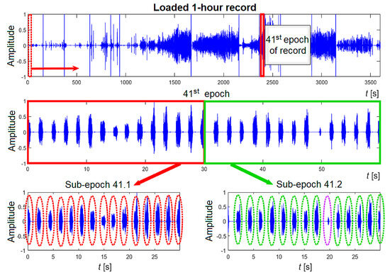 Schematically shown division of the signal into epochs and sub-epochs, the 41st epoch of record No. 3 (channel 1) is displayed.