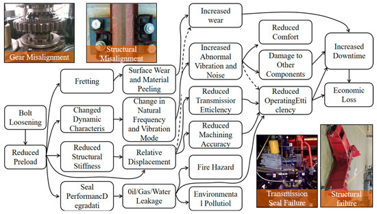 Bolt loosening represents more than localized connection failure; its detrimental effects propagate throughout the affected component and potentially the entire machine system, as illustrated in Figure 4, negatively influencing multiple aspects of agricultural machinery performance and operational efficiency:
