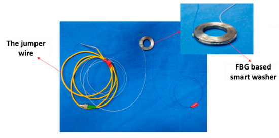 - Chen, D.D.; Huo, L.S.; Li, H.N.; Song, G.B. A Fiber Bragg Grating (FBG)-Enabled Smart Washer for Bolt Pre-Load Measurement: Design, Analysis, Calibration, and Experimental Validation. Sensors 2018, 18, 2586. [Google Scholar] [CrossRef] [PubMed]