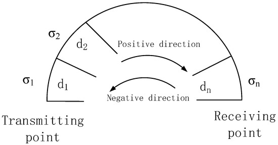 In a segmented non-uniform smooth spherical ground model, the propagation path from the transmission point to the reception point is divided into finite segments based on the characteristics of the terrain along the radio wave transmission path, and the equivalent conductivity of each segment of the ground is constant. For segmented non-uniform smooth path models, the Millington formula [18] is commonly used in engineering.