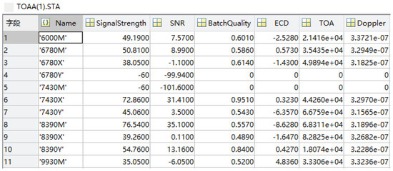 Table 2 shows the average values of the time delay information between the measured points and each station. is calculated as in Section 2.1, Section 2.2 and Section 2.3.