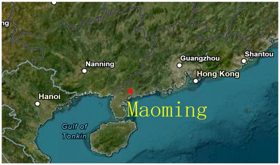 This experiment collected data in Maoming, Guangdong Province, China. There are no differential stations in the local area, so was calculated using the theory in Section 2.1, Section 2.2 and Section 2.3. The terrain of the Maoming area is shown in Figure 10. Most of Guangdong Province and Guangxi Province consists of general mountainous areas with altitudes below 500 m. The average terrestrial geomagnetic parameters, relative permittivity , and terrestrial conductivity were selected from Table 1.