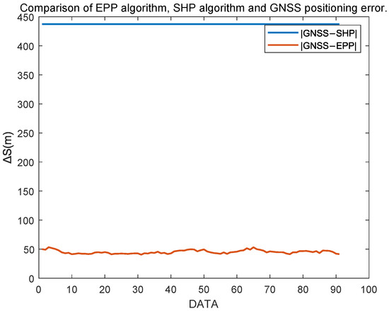 Figure 14 shows a comparison of the positioning errors between EPP and SHP based on GNSS positioning. As can be seen from the figure, EPP significantly reduces the positioning errors. After data processing, the RMSE for EPP and SHP is as shown in Figure 13.