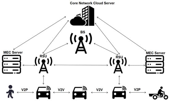 The main communication modes in the ISCCI are as follows: V2V communication technology can directly exchange information between vehicles, including position, speed, and driving intention, thus supporting applications such as collision avoidance and cooperative driving of motorcades. V2I communication technology allows vehicles to interact with infrastructure such as traffic lights, roadside units (RSUs), and traffic management centers, to obtain real-time traffic control information, road condition updates, and emergency notifications. V2P communication technology can realize information interaction between vehicles and intelligent devices carried by pedestrians, thus effectively improving the traffic safety level of pedestrians. V2N enables vehicles to communicate with remote servers or cloud platforms over cellular networks to upload, download, store, and process data.