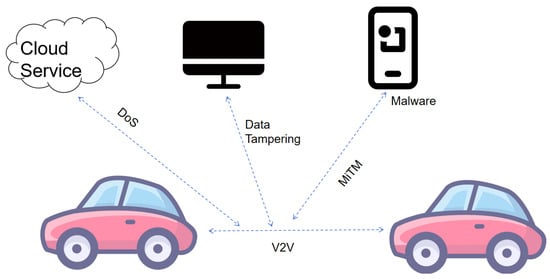 With the rapid development of industrial intelligence and mobile Internet technology, intelligent connected vehicles, as the core application of the Internet of Things, are gradually penetrating all aspects of social life. While providing convenience for travel, the IoV also introduces a range of security threats, e.g., remote vehicle control and malicious network attacks. Various incidents highlight that the IoV’s security issues cannot be overlooked. For instance, the signal interference incident involving forged keys in 2015, the Tesla key theft incident in 2018, system vulnerabilities jeopardizing vehicle safety in 2022, and the data leakage incident affecting Toyota owners in 2023 [4]. These phenomena provide a significant warning. The security threats to the IoV can be systematically analyzed from four dimensions: the physical layer, the network layer, the application layer, and the system layer. At the physical layer, wireless signal interference and electromagnetic attacks mainly stem from the vulnerability of radio frequency interfaces exposed during IoV communication. The main challenges faced by the network layer come from the complexity of heterogeneous network architectures, and traditional security mechanisms have difficulties in effectively defending against threats such as packet hijacking and denial-of-service attacks [5]. Application-layer security risks are mainly reflected in aspects such as the flaws of identity authentication mechanisms, access control vulnerabilities, and the leakage of user privacy data. In the system layer, as the fundamental support platform, security involves key links such as the protection of the operating system kernel, the security update mechanism, and the fault-tolerant recovery protocol. The integration of edge computing and blockchain technology has improved the system’s performance to some extent. However, the problems of computing delay and storage overhead caused by it make it a key problem to find a balance between security and efficiency, and this problem is directly related to the sustainable development of the IoV ecosystem [6].