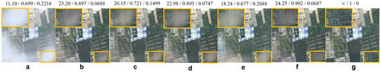 - Huang, B.; Zhi, L.; Yang, C.; Sun, F.; Song, Y. Single Satellite Optical Imagery Dehazing Using SAR Image Prior Based on Conditional Generative Adversarial Networks. In Proceedings of the IEEE/CVF Winter Conference on Applications of Computer Vision, Snowmass Village, CO, USA, 1–5 March 2020; pp. 1806–1813. [Google Scholar]