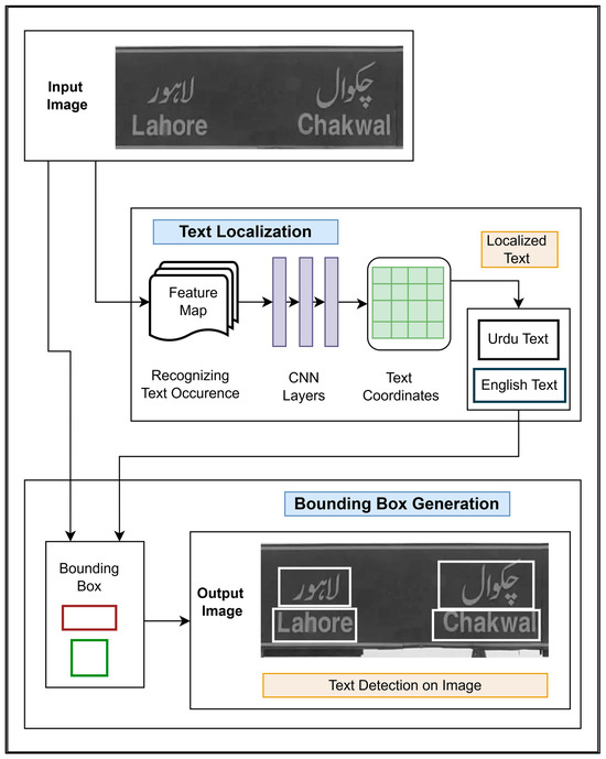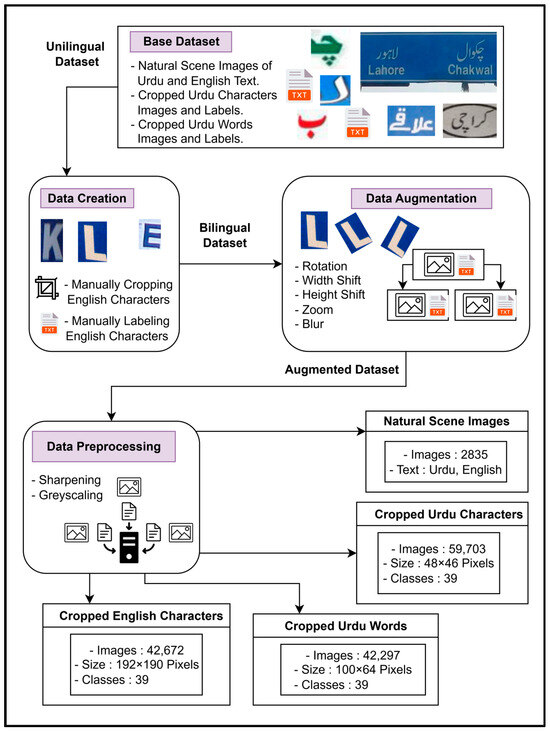 Butt used the Deep Learning Laboratory’s Traffic Signboard Dataset (DLL-TraffSiD) to develop bilingual text (Arabic and Urdu) detection and recognition methods for traffic signboards [29]. A pipeline was also developed for bilingual text detection and recognition for an outdoor road environment. Results showed that the system had wide applicability in text detection and text recognition on the proposed dataset. However, this method was employed on small datasets and was prone to overfitting [30,31]. Thus, a mechanism was developed for detecting and recognizing Urdu and English text (bilingual) in all types of NSIs from a large dataset. Therefore, a bilingual dataset and pipeline model were developed to address these issues and to classify Urdu and English text from complex NSIs.